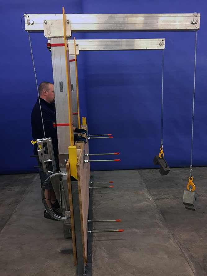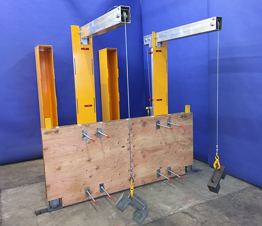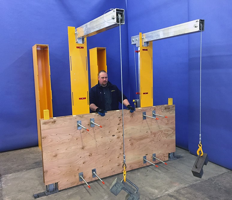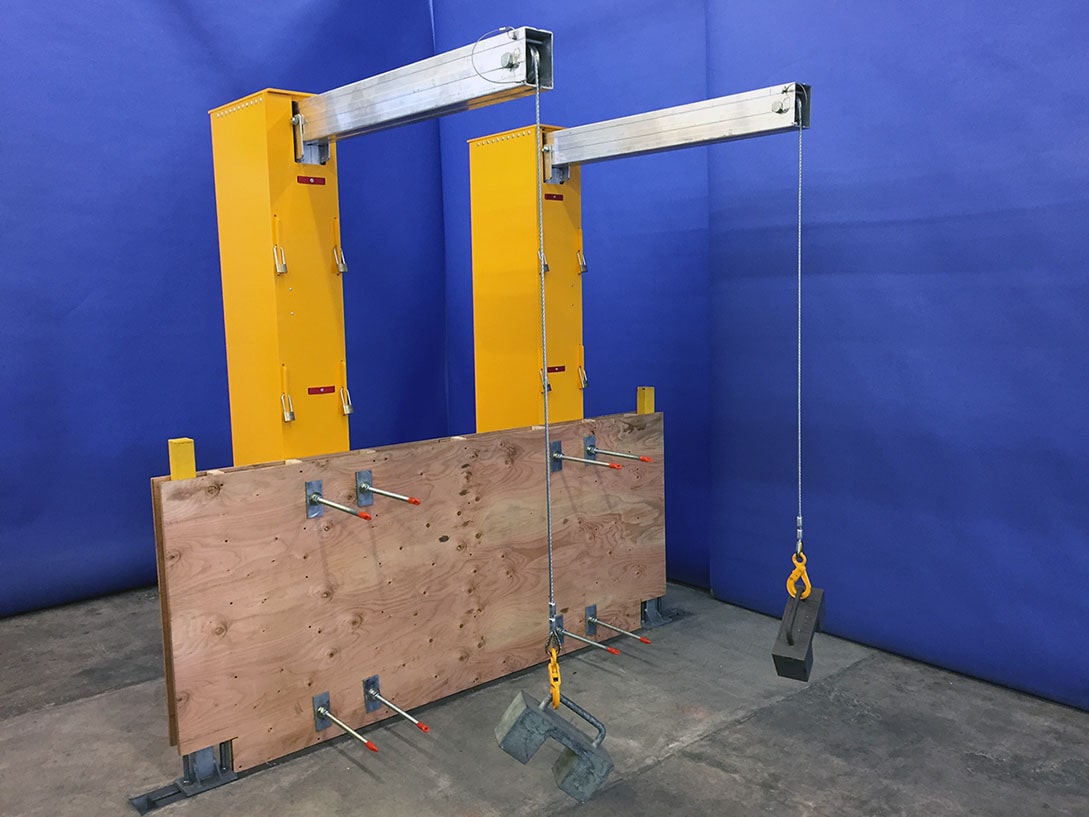 • Les Bossoirs son boulonnés à travers un mur de 8” en béton coulé sur place.