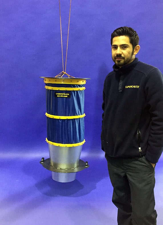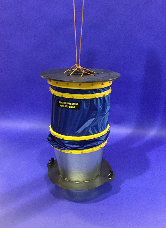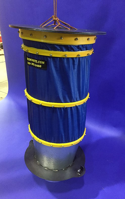 Greenup Industries LA USA 70723   Chute en acier galvanisé 47″ avec bride, collier en plastique pour lever et housse en nylon avec anneaux en plastique renforcé.