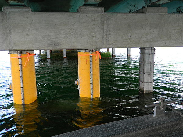 • Restoration de colonnes de pont corrodées en marée.