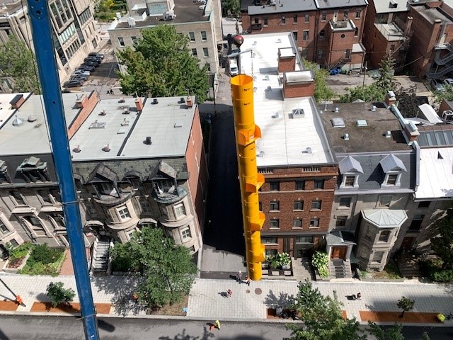 La chute a ensuite été enveloppée dans des toiles orange pour l’amiante.