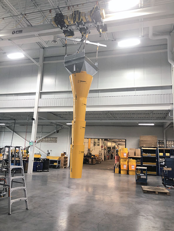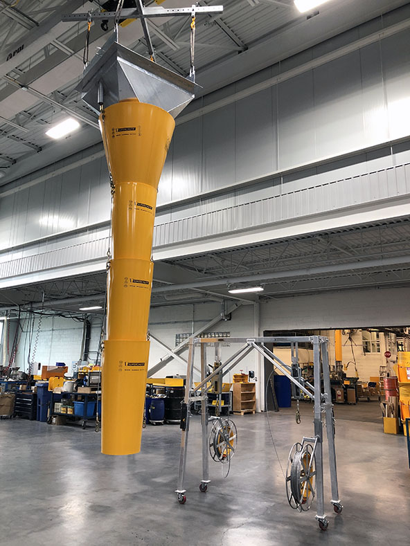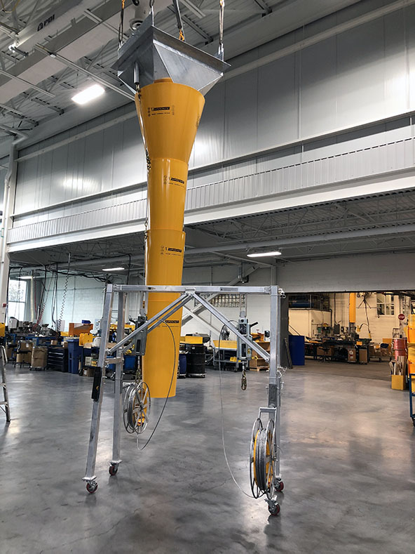 POSCO Engineering & Construction Ltd., Korée Centrale thermique au charbon à Masinloc, Philippines Système d’urgence de décharge de charbon. Système à chute mobile fabriqué sur mesure pour vidanger des silos de charbon pendant des opérations d’entretient Éléments clés : Palan Type A en aluminium avec 2 treuils manuels Tractel Entonnoir à bride en acier avec des tubes pour passe-câbles Section cone en plastique pour transition Sections de chutes en plastiques emboîtables Opération : l’entonnoir est placé dans une ouverture d’une dalle de plancher – le palan est utilisé pour lever ou baisser la chute en plastique en dessous de la dalle.     Autres projets similaires :