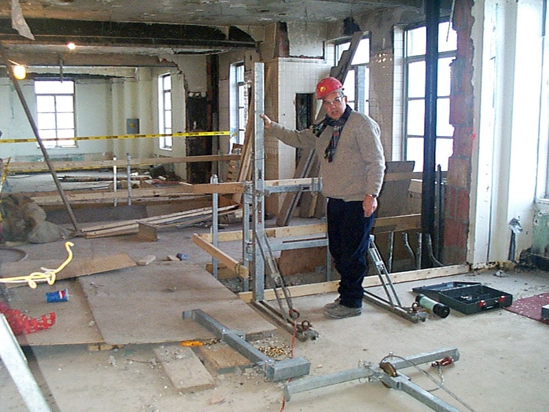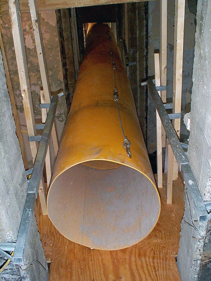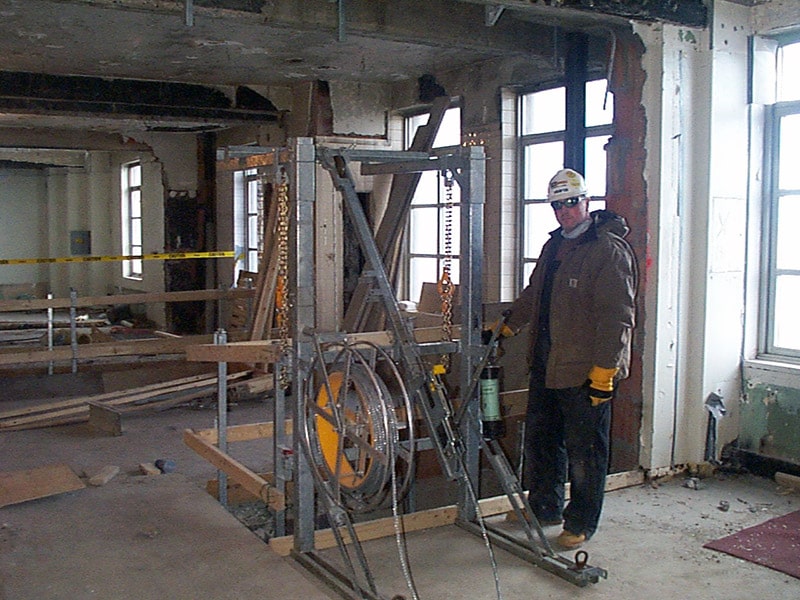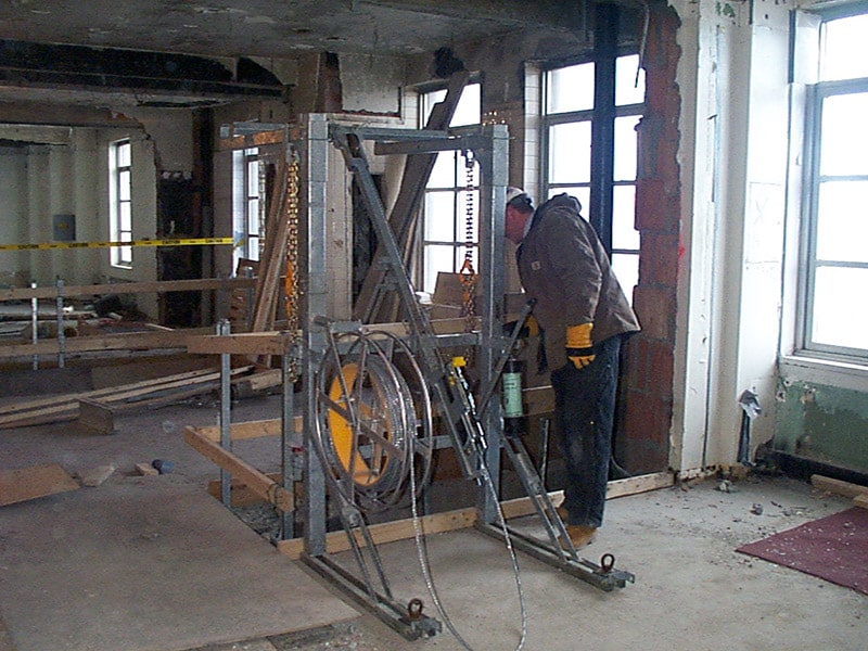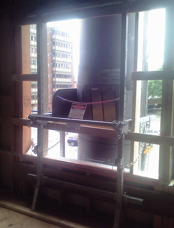 Safway NY, USA Palan SC-750-bd en action pour suspendre une chute dans un espace clos.