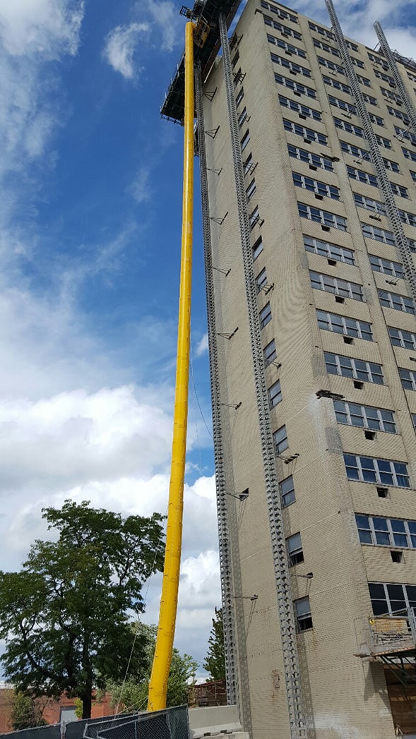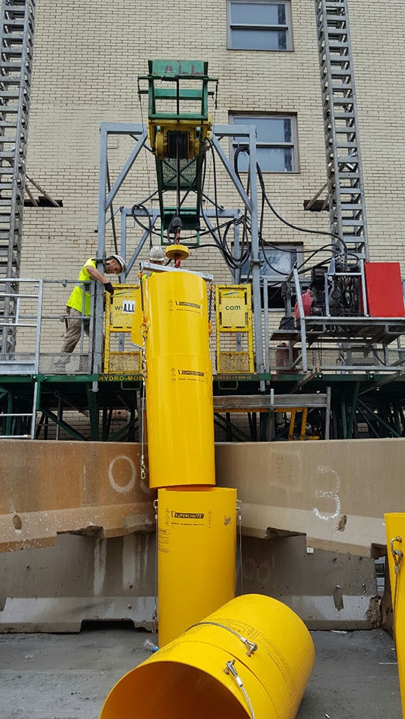 A.L.L. Masonry Construction Company Chicago, IL, USA Chutes on Hydro Mobile Mast Climbers.
