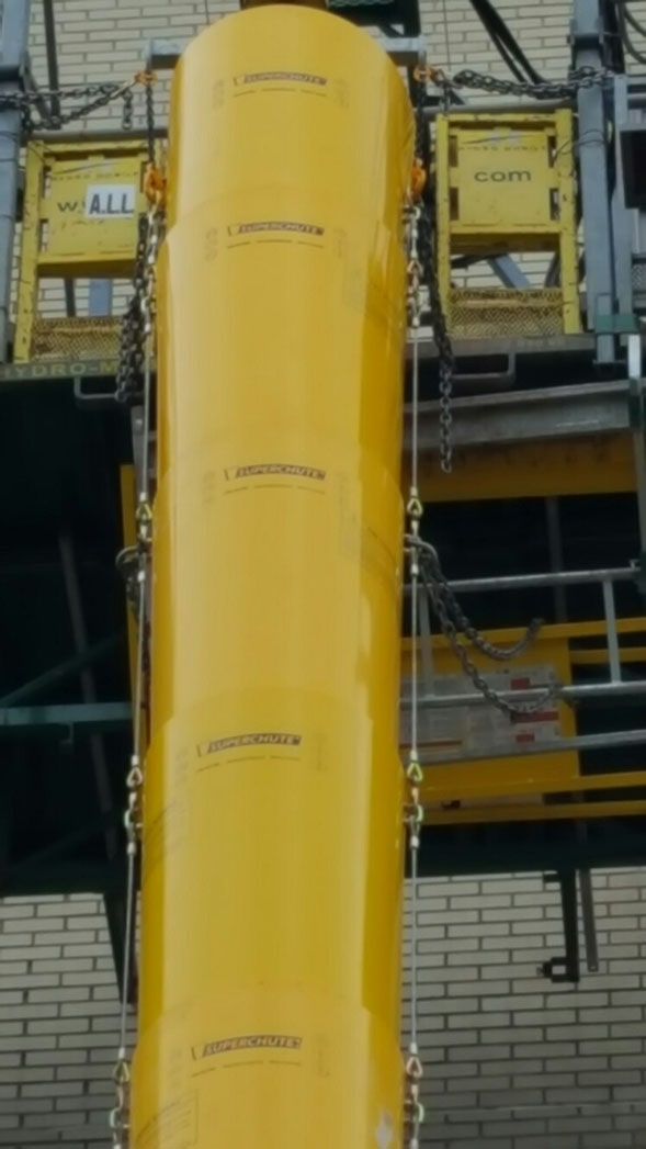 • Chute is suspended from the cable winch on the platform