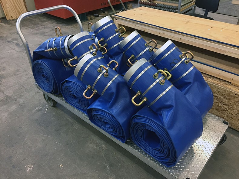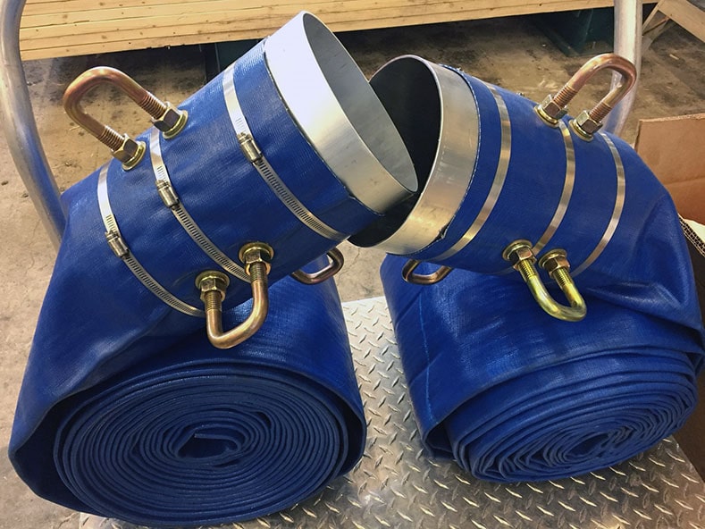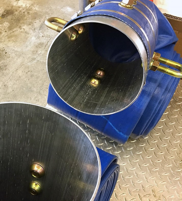 US Army Corps of Engineers Pittsburgh, PA, USA   8″ diameter x 49′ BLUE Flexible Hose with Aluminum Coupling & 4 x U-Bolts.
